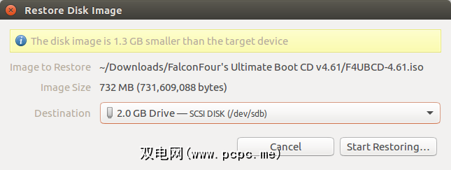 打开后,选择媒体(USB驱动器或空白DVD / CD)。选择用于挂载ISO文件以刻录实时Linux CD的位置后,单击开始还原...