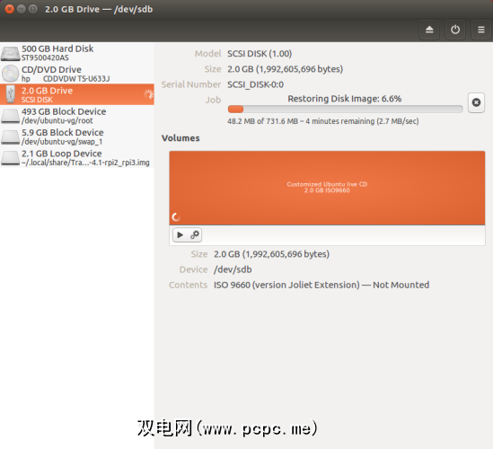 选择了ISO之后,是时候将其挂载到介质上以创建可引导磁盘了。我使用了Basho Technologies的备用USB驱动器,但只要有足够的空间容纳ISO,您就可以使用空白CD或DVD。在制作实时CD时,您需要一个能够刻录ISO的程序。由于我正在运行Ubuntu 16.04,因此我只使用了Disk Image Writer,但是UNetbootin是Windows,Mac OS X和Linux安装程序的绝佳选择。