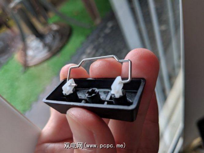 长键(如空格键,Shift和Enter键)在按下时会摆动,除非您有稳定剂。稳定器插入键帽的左侧和右侧。