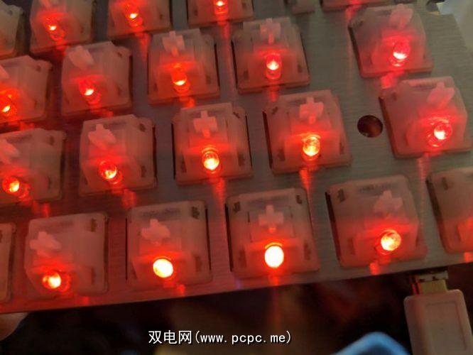 这些开关会将PCB固定在适当的位置。总体而言,与焊接LED并将开关直接焊接到主板相比,平板使组装键盘更加容易。