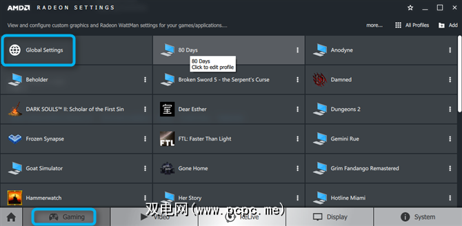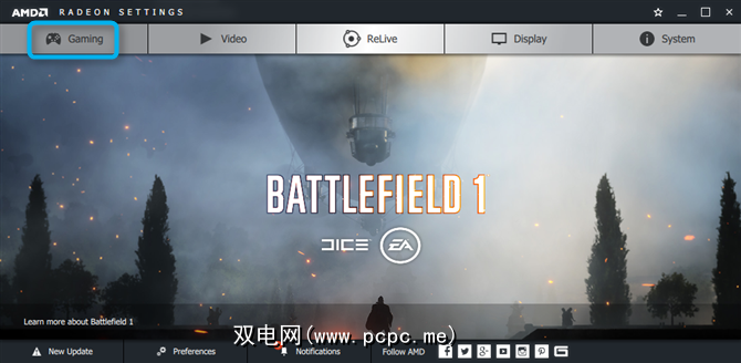 如果您有AMD卡,它的工作原理如下:安装Radeon设置。运行它,然后转到游戏选项卡: