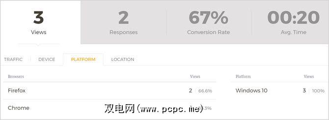 您还可以从更多中查看 Form Analytics >菜单。查看响应和视图,查看流量,查看使用的设备以及查看位置和平台。
