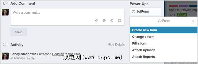 加电可以将Trello的功能与名为JotForm的表单创建工具结合起来。有了这种出色的控制能力,您就可以制作精美的表单,而无需离开Trello。