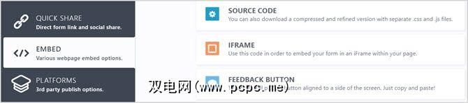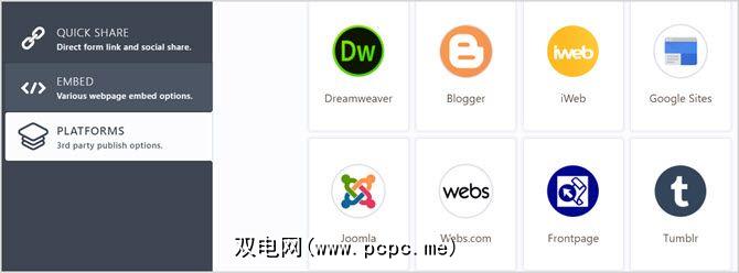 如果要将表单发布到第三方平台,则可以使用以下选项平台区域。从Tumblr,Joomla,Blogger和许多其他类似平台中进行选择。