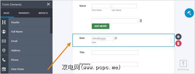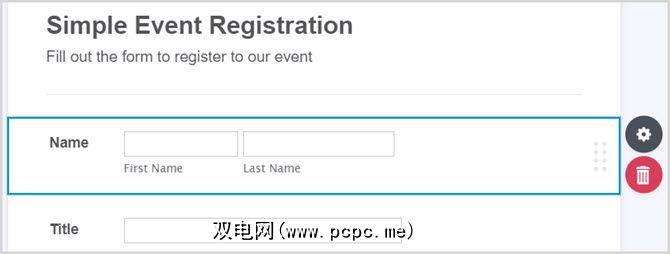 单击元素或将其拖动到表单上,然后选择齿轮图标以按照说明调整属性。