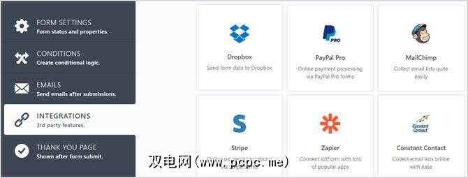如果使用付款模板,则可以包含Square,PayPal,和WePay。您还可以检出Google Analytics(分析),E-Signature和SoundCloud的表单小部件。