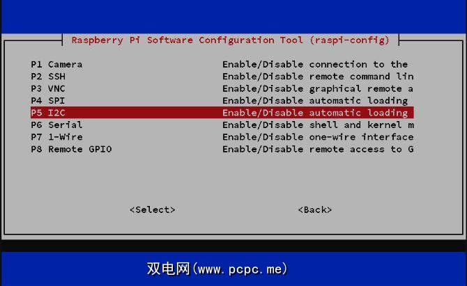 sudo raspi-config选择接口选项> P5 I2C,,然后选择是。