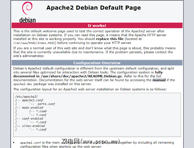 您应该看到一条“ It works!"消息,表示您的Web服务器正在运行! Apache和MySQL都将在后台运行,并在启动时启动。在Web服务器现在可以使用的情况下,您可以在/ var / www中编辑文件。只需刷新浏览器即可查看您网站上的更改。