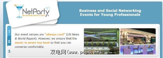 一种方式也许可以通过NetParty与这些人建立更牢固的专业关系,该网站为年轻专业人士提供商务和社交活动赞助。