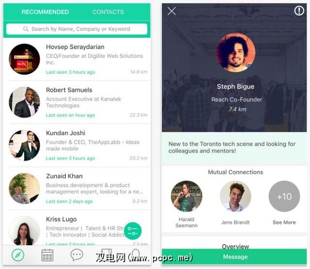 在这些常见的内容共享网站之外,还有免费应用程序,例如Reach,可以找到共享共同点的专业人员