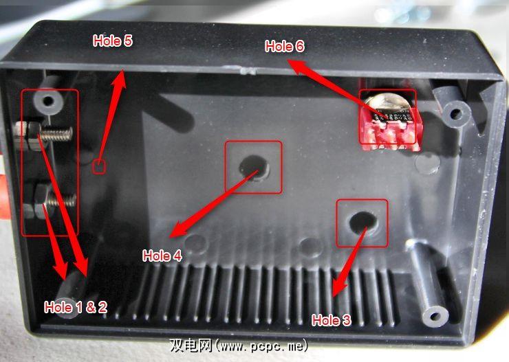 您将需要钻六个孔。我建议从外壳内部而不是外部进行钻孔。另外,在移至下一个孔之前,请确保您的组件确实合适。