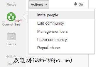 个人邀请。。如果您在社区信息中心上点击“操作",然后转到“邀请人们",可以通过输入特定的Google+名称或电子邮件地址直接邀请特定人员。如果您已经认识对您的社区感兴趣的人,那就太好了。