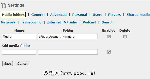 命名文件夹,键入音乐目录的本地链接并确保已启用。当您单击保存时,该文件夹中存储的音乐文件将对连接到Wi-Fi网络上新音乐服务器的所有用户可用。如果您设置了音乐播放列表(例如iTunes播放列表),则可以将Subsonic指向“ 常规"设置链接下的那些文件夹。