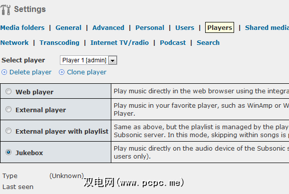 您还可以定义用户的方式可以通过网络将音乐流传输到他们自己的计算机或设备。选择包括启动用户自己的音乐播放器,或使用与Subsonic集成的嵌入式Jukebox播放器。