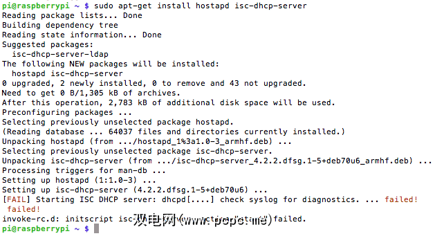 在这里,我们已经安装了DHCP服务器,以便WiFi客户端可以自动获取IP地址。忽略该错误–这仅意味着我们尚未真正设置它。