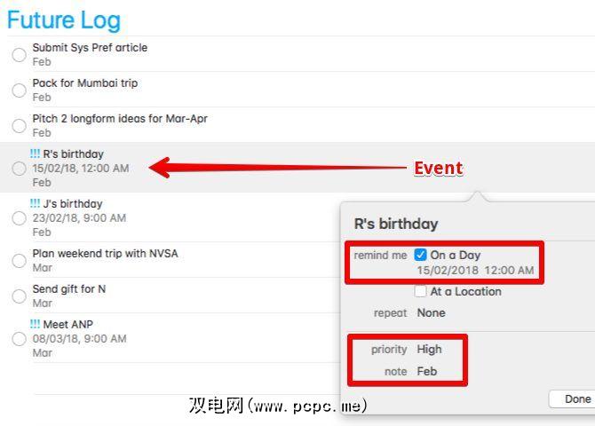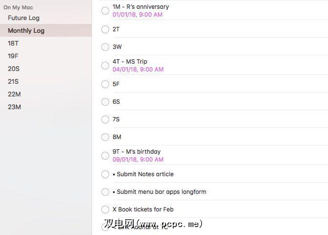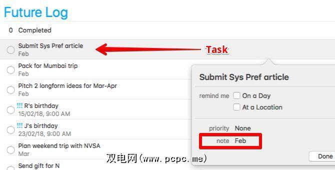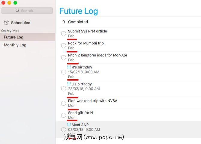 添加到“将来日志"列表很简单。确保按时间顺序添加条目,以便您可以按创建日期对条目进行排序,以查看“将来的登录"操作。当然,您可以随时将错误的条目拖放到正确的位置。