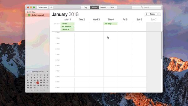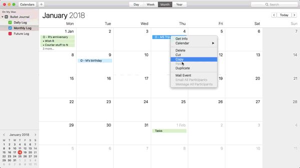 为节省时间,从每月日志中复制事件,然后将其拖放到“每日日志"中。该应用程序会使用正确的颜色自动更新事件,因此您就可以知道它们是“每日日志"事件。