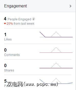 Facebook还为您的帖子提供了一个名为“参与度"的统计信息。参与度是在您的页面上分享,喜欢,评论或单击链接的人数。当人们分享一个帖子时,那就是它可以传播开来。您想在Facebook准则内尽一切努力鼓励分享。