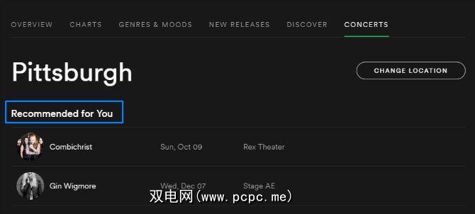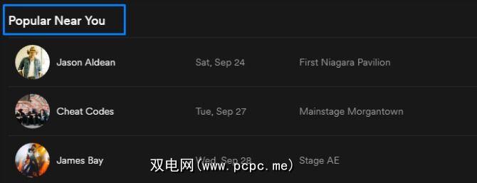 Spotify的“音乐会"功能也可以找到在其他国家演出。但是,在大多数情况下,它仅限于您的祖国。