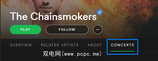 如果您不太在意位置关于演出以及有关您将要看到的艺术家的更多信息,“音乐会"选项卡也可以从艺术家的页面中看到。