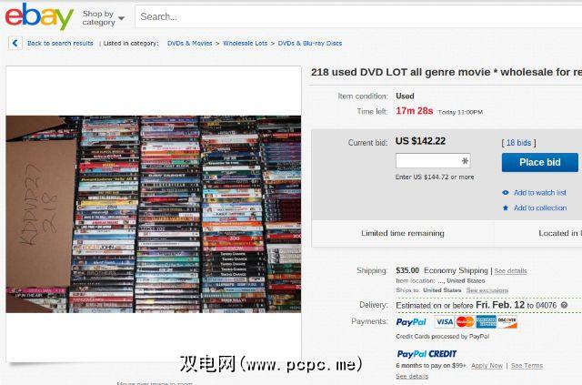 这些通常是某人进行春季大扫除的结果,或者决定他们的DVD收藏占用了太多空间。因此,您可以为几分钱买一大盒各式各样的电影-其中许多都是新奇的。通常,您会找到很多盒子,在拍卖的最后几分钟内,其最终销售价格可低至每部电影50美分至75美分。