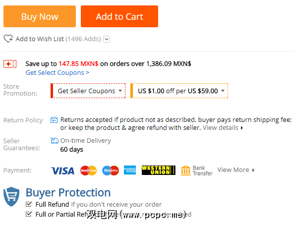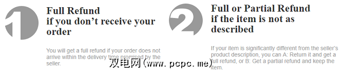 卖家还可以为买家提供特定的保障措施。通常,提供的担保越多,您购买商品的信心就越大。