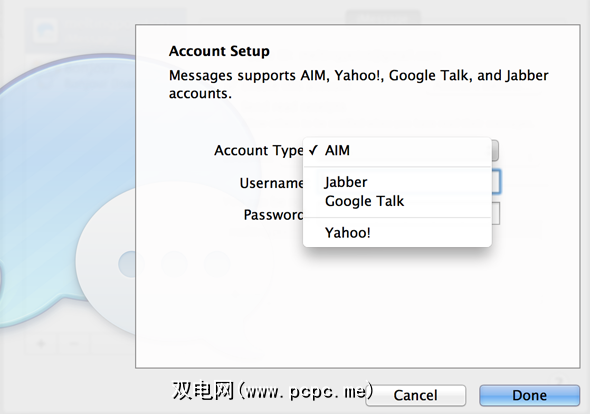 就像iChat(已从Mountain Lion中完全删除)一样,Messages允许您添加多个帐户,并且可以充当所有在线即时消息传递需求的单一门户。其中包括AIM,Yahoo,Jabber和Google Talk。您还可以使用Bonjour与本地网络上的其他人聊天(前提是他们已对其进行设置),只需勾选一个方框即可启用该功能。