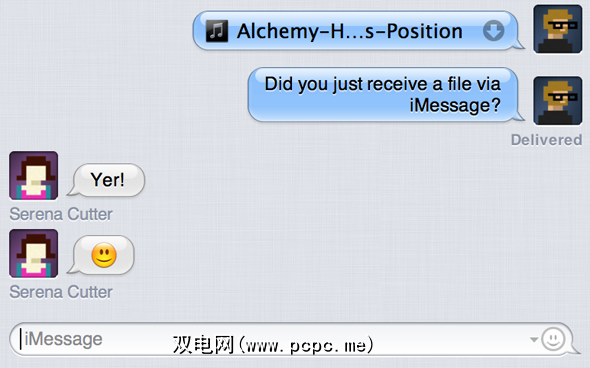 关于iMessage,当然可以发送所有消息接收者可以收听但无法保存的文件的格式,包括图像,纯文本,.PDF甚至.MP3。为此,请从屏幕顶部的 Buddies 菜单中选择发送文件…,或将要共享的文件拖到消息框中。