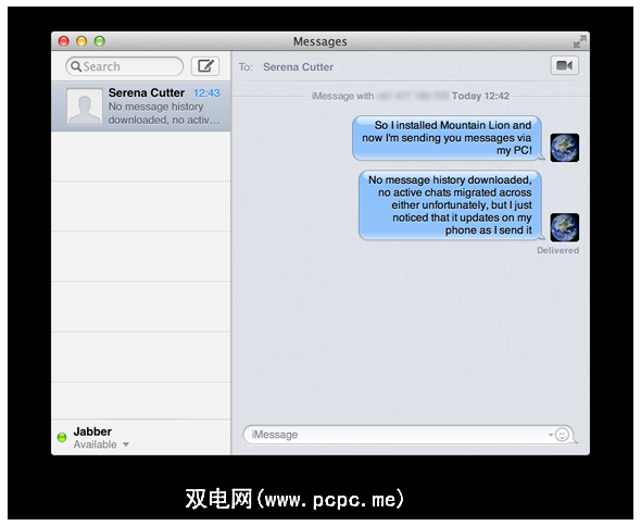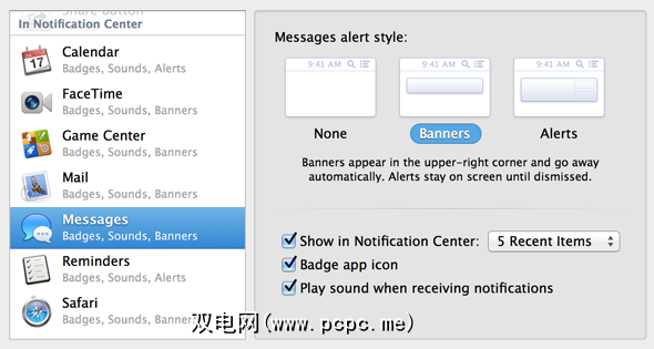 与iChat相比的另一个优势是,消息自动将来自任何已连接帐户的警报放入通知中心,这是Mountain Lion的另一个新功能。仅当Messages应用程序当前没有焦点时才会发生这种情况,并且如果您不重视它,可以通过系统偏好设置>通知轻松更改它。