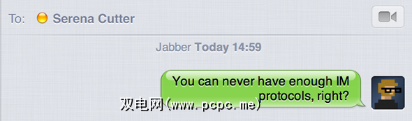 尽管使用了统一的界面(需要60秒钟才能习惯),但仍然很容易分辨出您正在与哪个IM协议进行通话。除了使用在其中键入消息框将其拼写出来之外,即使在多个平台上向同一联系人发送消息,您仍然可以将对话区分开。除此之外,根据您的iOS设备,我正在发送的Google Talk消息显示为绿色气泡,而iMessages保留其商标为蓝色。