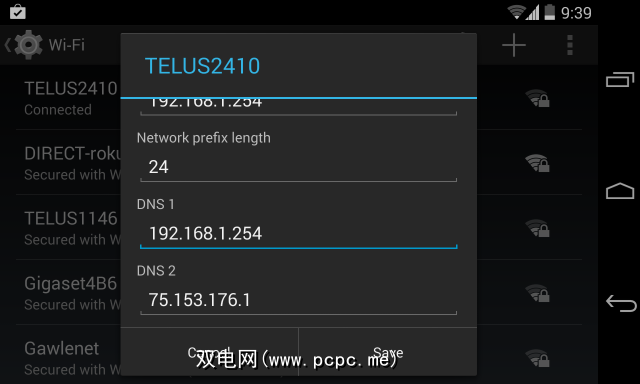 类似于iOS,Android允许您更改DNS服务器,但是此设置仅适用于当前的Wi-Fi网络。换句话说,您每次连接到新的Wi-Fi网络时都必须重复此设置。但是,如果您具有Android手机的root用户访问权限,则可以安装Set DNS应用程序[不再可用],该应用程序可以一次设置DNS服务器,并使更改在整个系统范围内生效。