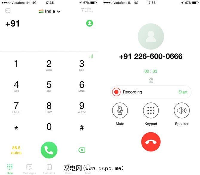您必须在拨号屏幕上手动启用呼叫记录。 TextFun还使用“硬币"作为虚拟货币,您可以通过观看一些促销内容来购买或赚钱。与其他类似,一包99个硬币的价格为0.99美元,拨打印度电话号码每分钟需要7个硬币(约合每分钟0.07美元)。