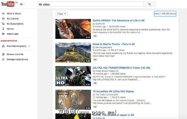 如果您正在寻找4K的流视频,YouTube可以满足您的要求。尽管还没有一种方法可以专门搜索4K内容,但是如果在搜索词中添加“ 4K",则应该可以找到一些利用新电视惊人分辨率的出色视频。