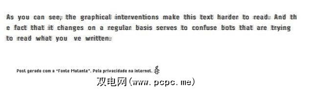 大赦国际的新想法被称为“突变字体"。使用Mutant字体很简单:只需访问网站(www.mutantfont.com/en),然后输入要防止窥视的秘密文本。单击“生成字体",复制代码,并将其粘贴到您的博客中。文本是人类可读的,但给机器带来了困难。