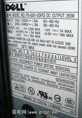 这就是为什么要给它们加上标签!关闭计算机,从电源上拔下电源,然后看一下电源。它应该有一个看起来像这样的标签。