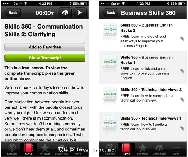 来自同一公司,负责上述在线视频词汇,该公司商务英语Pod提供的英语应用程序是一种随时随地收听的好方法。借助有关商业策略,沟通技巧,处理批评和出售想法的词汇课程,您可以选择多种方式。每个都有简短的描述,查看成绩单的选项以及保存收藏夹的能力。请注意,在较新版本的iOS中,“后退"按钮存在问题。