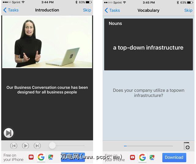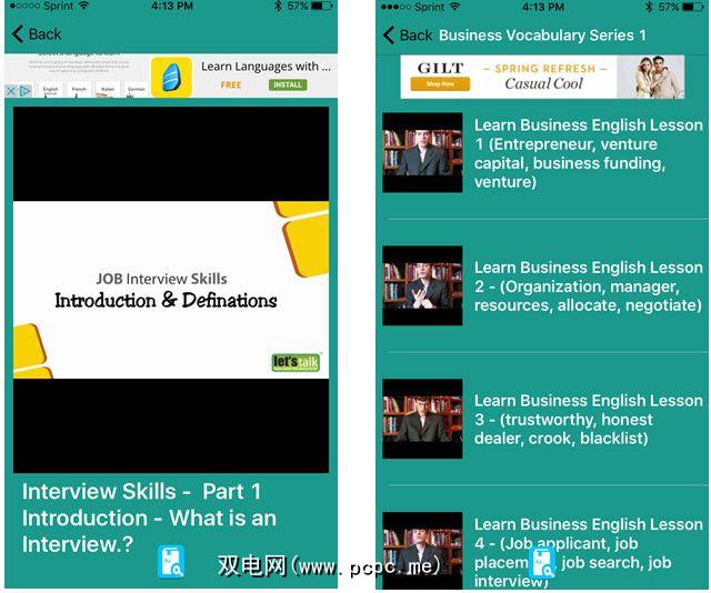 对于视频和音频课程,词汇系列选项以及常见上下文,商务英语-上下文中的词汇和课程对于iOS用户是一个不错的选择。每个部分均提供可观看或收听的视频,以进行业务对话,常用表达,工作面试培训以及特殊领域的课程。您还可以检出Pro版本以进行完全访问,并以$ 2.99的价格删除广告。
