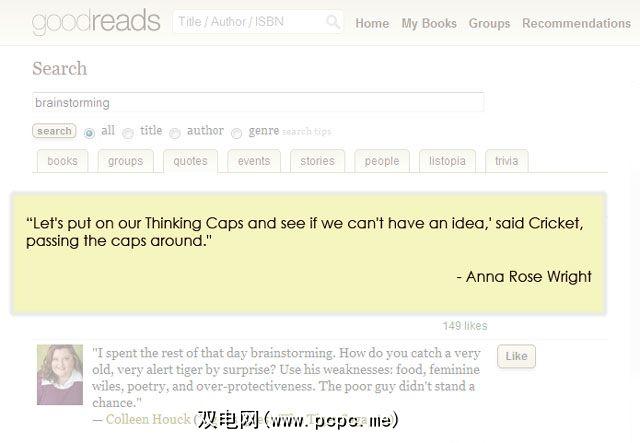 单独或成组的头脑风暴需要点火。火花疏通车轮。正确的报价可以唤醒沉睡中的横向思考。我最喜欢的各种报价网站之一是Goodreads。如果失败,那么总会有Google搜索。