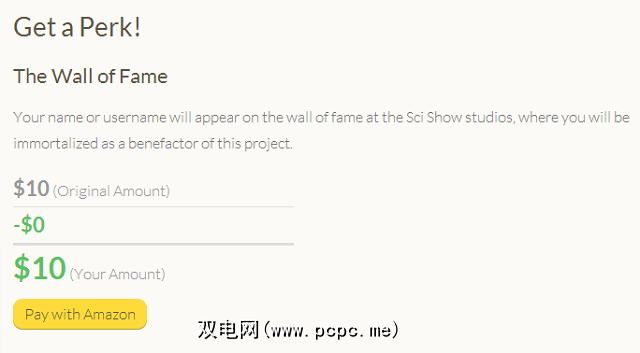 如果您的Perk银行里没有任何东西,并且您不想花时间储蓄,您可以直接捐赠而无需每月订阅。一年之内,任何创作者的捐款都不得超过10,000美元。我知道Bummer,但是Vlogbrothers说这是由于“法律原因"。