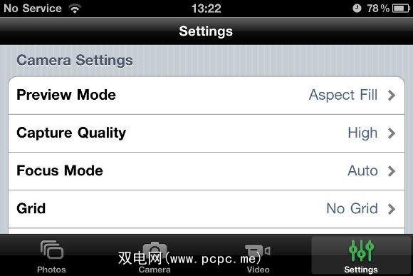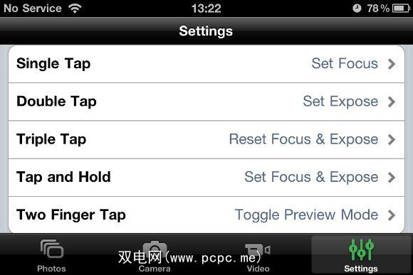 保存最好直到最后,还可以使用触摸手势来控制相机,并且可以在 Settings < / em>区域。从下面的屏幕快照中可以看到,默认配置非常直观。