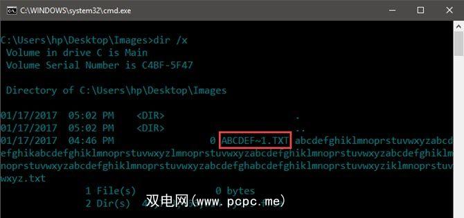 输入DOS命令以列出当前目录中的文件和文件夹。 dir 命令是内部命令,在所有Microsoft操作系统上均可用。 / X 属性显示非8.3文件名的简称。当要检查的文件太多时,您也可以使用DIR / X / P暂停并从一个屏幕移至下一屏幕。
