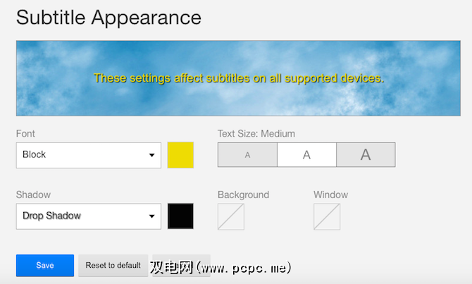 单击您的个人资料图片,然后转到我的帐户>字幕外观。从那里可以更改字体,颜色,阴影和背景。