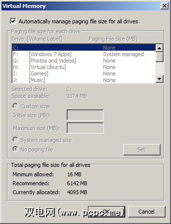增加Pagefile很容易。首先,打开开始并右键单击计算机,选择属性;从这里打开高级>设置>性能>高级。在虚拟内存下,选择更改,然后更改页面文件的大小,以便有更大的RAM可用。