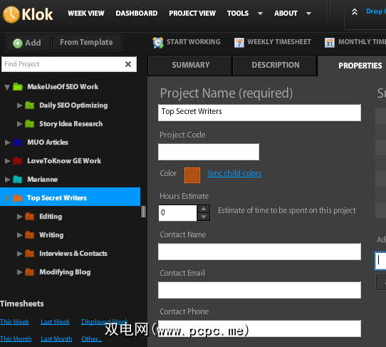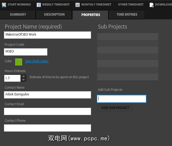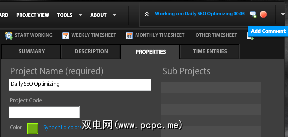 您可以为每个项目进行颜色编码,从而使图形和饼图报告更有意义。您还可以将子项目添加到每个项目。例如,我为PCPC.me进行SEO工作时大约承担4或5个职责,因此我创建了一个SEO项目,并在此下将相关任务添加为子项目。