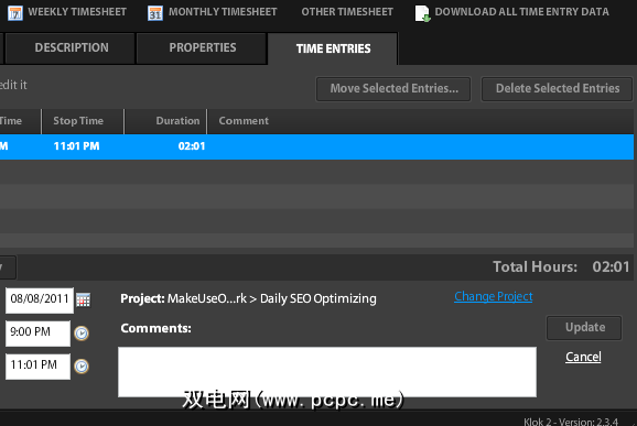 顺便说一句–自动时间输入不是一成不变的。如果需要调整任何时间条目,只需单击“ 时间条目"选项卡,单击条目项,然后您可以在屏幕底部编辑该条目的任何详细信息