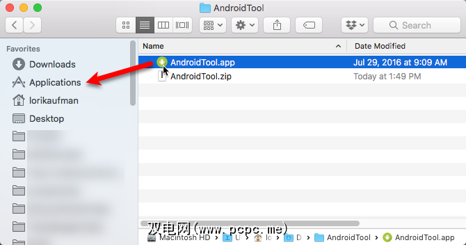 将AndroidTool下载到Mac 。双击ZIP文件以提取应用程序。然后将APP文件拖到 Applications 文件夹中进行安装。
