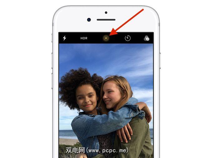 在将其设置为照片模式后,您将需要确认您已打开“实时照片"。为此,请查看主照片取景器上方的顶部栏。 “实时照片"图标是两个由虚线圆包围的实心圆圈,并显示为黄色。