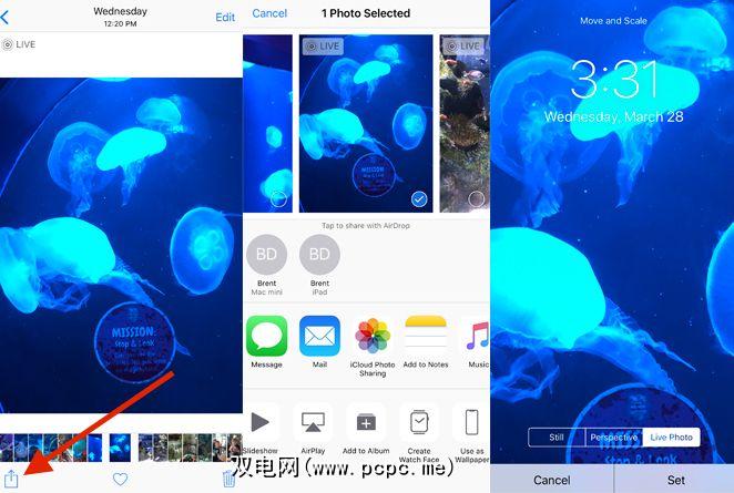 炫耀实时照片的一种好方法是将其设置为锁定屏幕墙纸。从图像的共享表中,选择用作墙纸,然后选择设置锁定屏幕。现在,在锁定屏幕上,可以使用3D Touch图像了。
