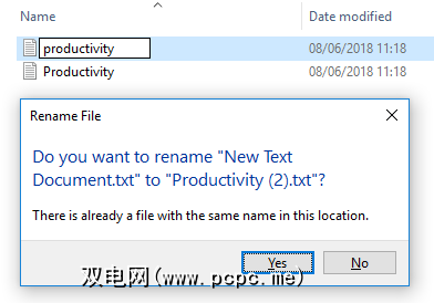 “区分大小写的文件名"是什么意思?好吧,如果我在Windows中创建一个名为“ Productivity.txt"的文件,即使在技术上有所不同,也无法在同一文件夹中创建另一个名为“ productivity.txt"的文件。 Windows将抛出一条错误消息,提示“此位置已经存在一个具有相同名称的文件" :