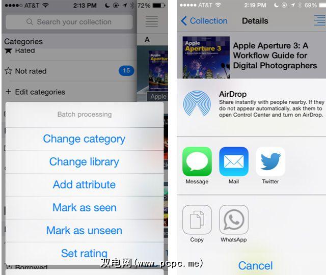 该应用程序还允许您将书架更改为11种不同设计之一,并为您的收藏集输入密码。您可以批量处理集合,方便将电影标记为可见或不可见,或更改所选项目的类别。奇妙库还允许您公开共享单个条目或整个目录中的链接,直接链接到Twitter,Facebook或通过电子邮件和SMS。